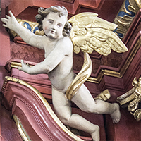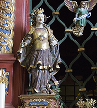 Der zweigeschossige Katharinenalter im Hauptraum ist ein Geschenk des Fürstabts von Muri. Sein Wappen erkennt man oberhalb des Gemäldes. Im Hauptgeschoss umschliessen zwei korinthische Säulen das "Engelsfenster" mit den beiden barocken Figuren der hll. Katharina und Barbara.